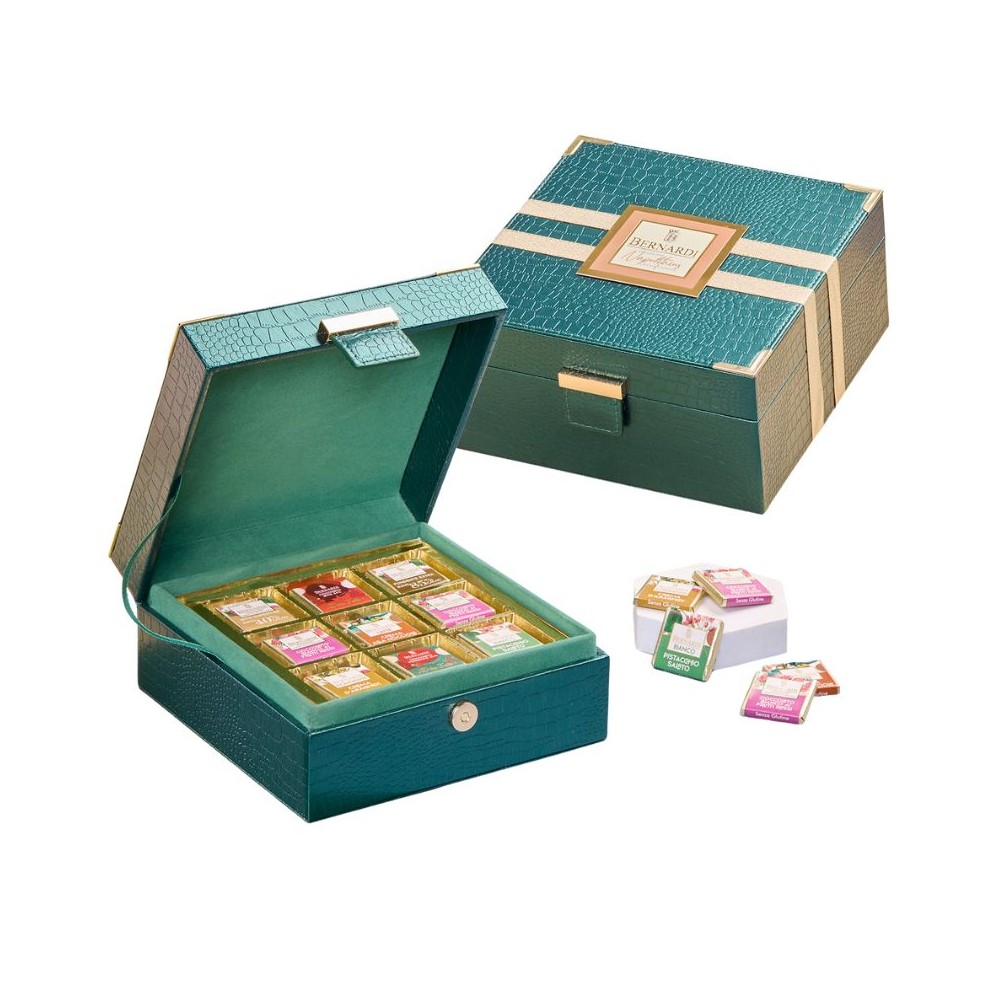Scrigno in ecopelle con cioccolatini – Bernardi Cioccolato